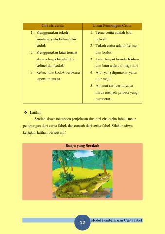 Setelah siswa membaca penjelasan dari ciri-ciri cerita fabel, unsur