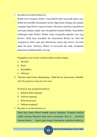 5. Bacalah cerita fabel berikut ini!