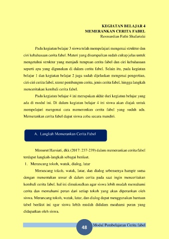 Menurut Harsiati, dkk (2017: 237-239) dalam memerankan cerita fabel