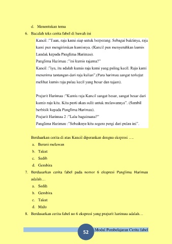 8. Berdasarkan cerita fabel no 6 ekspresi yang prajurit harimau adalah…